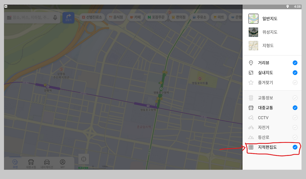 네이버지도 지적도 보기 (모바일 앱)