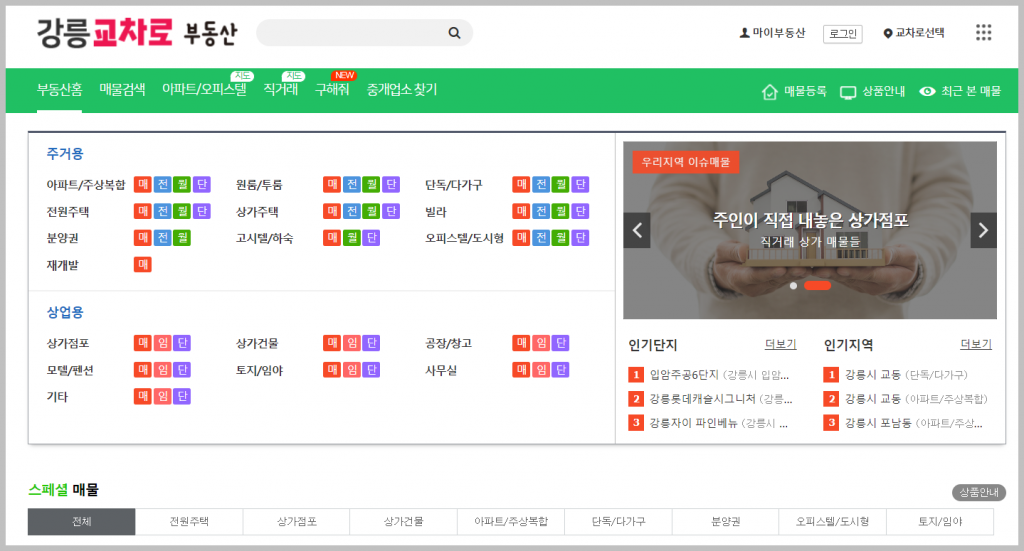 해당 링크를 클릭하면 강릉 교차로의 부동산 페이지로 이동할 수 있으며, 이곳에서는 지역 내 매물부터 일자리, 중고차 거래까지 폭넓은 내용을 제공하고 있습니다. 사이트는 누구나 쉽게 이용할 수 있도록 직관적으로 구성되어 있으며, 네이버 카페나 블로그와 비슷한 형태로 구성되어 있어 처음 접하는 사용자도 어렵지 않게 원하는 내용을 찾을 수 있습니다.