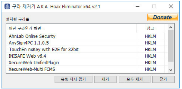 다만 보안 프로그램을 삭제한 뒤 인터넷 연결에 문제가 생기는 경우도 있습니다. 이때는 네트워크 설정을 복구해 주는 기능을 함께 활용하면 해결되는 경우가 많습니다. 프로그램 안에는 와이파이 아이콘 형태의 복구 기능도 포함되어 있습니다. 또한 개발자를 후원할 수 있는 기부 기능도 제공되어 있으며, 최근에는 간편 결제 방식으로 후원할 수 있게 되어 있습니다.