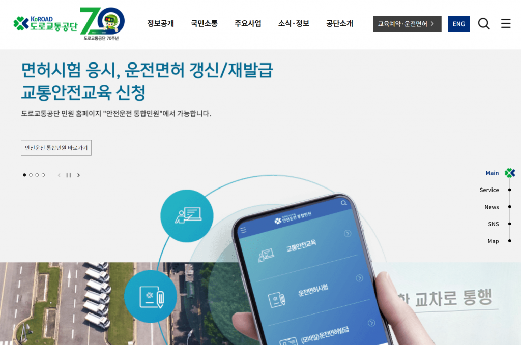 도로교통공단은 두 개의 홈페이지를 운영하고 있습니다. 하나는 기본적인 도로교통공단의 홈페이지이고, 다른 하나는 이러닝 센터로, 교통안전 교육을 받을 수 있는 곳입니다. 일반 시민들은 아마 이러닝 센터 홈페이지를 더 자주 방문하게 될것입니다.