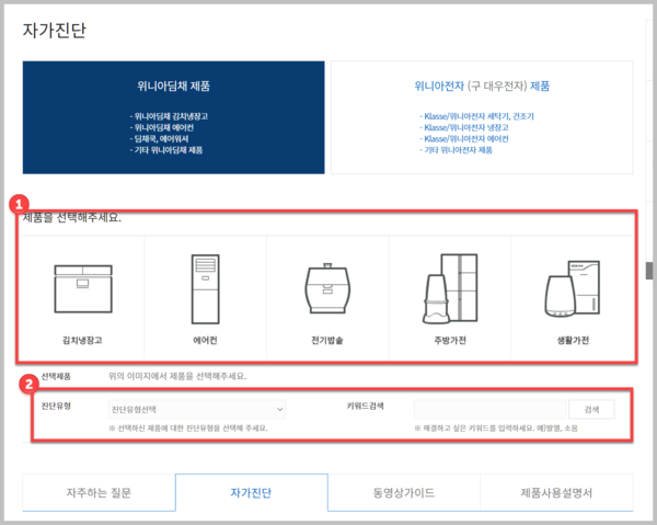 위니아 서비스센터 사이트: https://www.winiaaid.com/solution/selfList