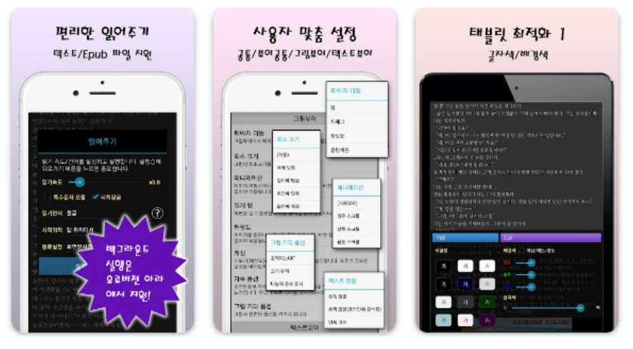 - 읽어주기 기능 존재함 단, 백그라운드 읽어주기 기능은 유로버전 아라에서 지원
