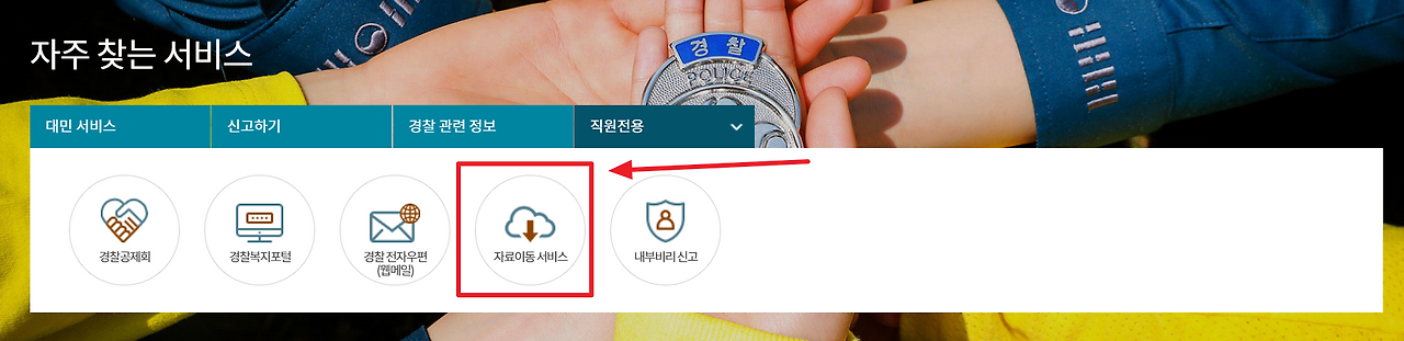 먼저, 자료이동서비스를 이용하기 위한 첫걸음은 경찰청 홈페이지 접속입니다.