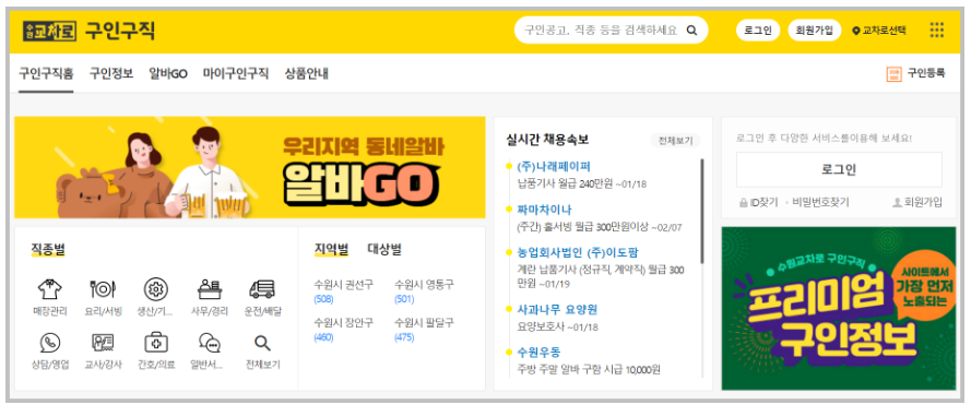 인터넷이 없던 시절부터 부동산과 같은 지역정보를 실었던 교차로는 아직까지도 온라인 웹사이트를 통해 지역 일자리, 부동산, 자동차와 같은 광고를 제공하고 있습니다. 그중 많은 사람들이 이 신문의 일자리페이지에서 일자리를 찾고 있다고 합니다. 따라서 이번 포스팅에서는 수원교차로 구인구직 홈페이지에 관한 설명을 해보고자 합니다.