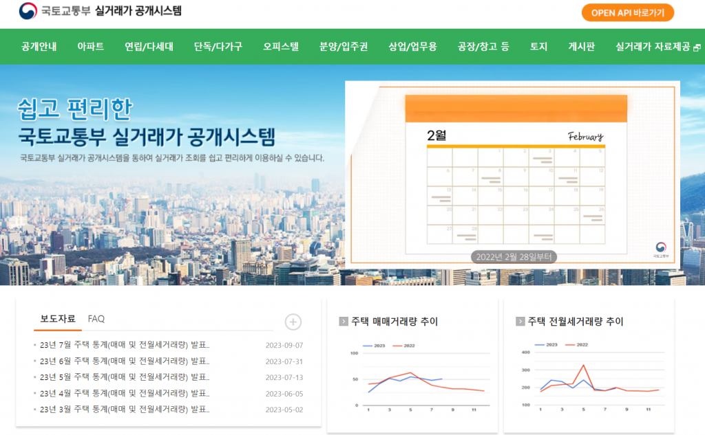 실거래가 공개시스템을 확인하기 위해서는 국토교통부의 웹사이트를 방문하면 됩니다. 위 링크를 통해 홈페이지에 접속한 후 상단 메뉴에서 아파트, 연립다세대, 단독다가구, 오피스텔 등 주거형태를 클릭하면 검색할 수 있습니다.