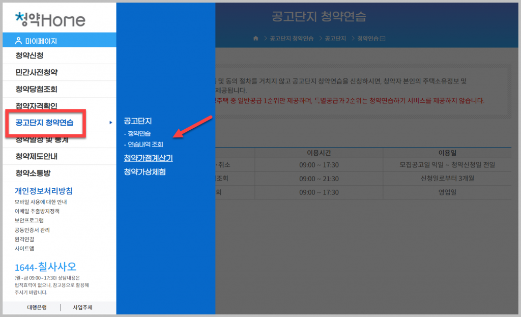 특히 '모집공고단지 청약 연습'이라는 항목이 있습니다. 이곳에서 실전처럼 연습할 수 있다고 하니, 미리 한번 연습해보는 것도 좋을 듯합니다. 또한 가점계산기 역시 이용하여 나의 점수를 확인하는 것을 추천드립니다. 아파트투유보다 깔끔한 화면과 잘 정리된 모습 덕분에 훨씬 편리합니다. 제도 안내를 꼼꼼히 읽어본 후 충분히 활용하시기 바랍니다.