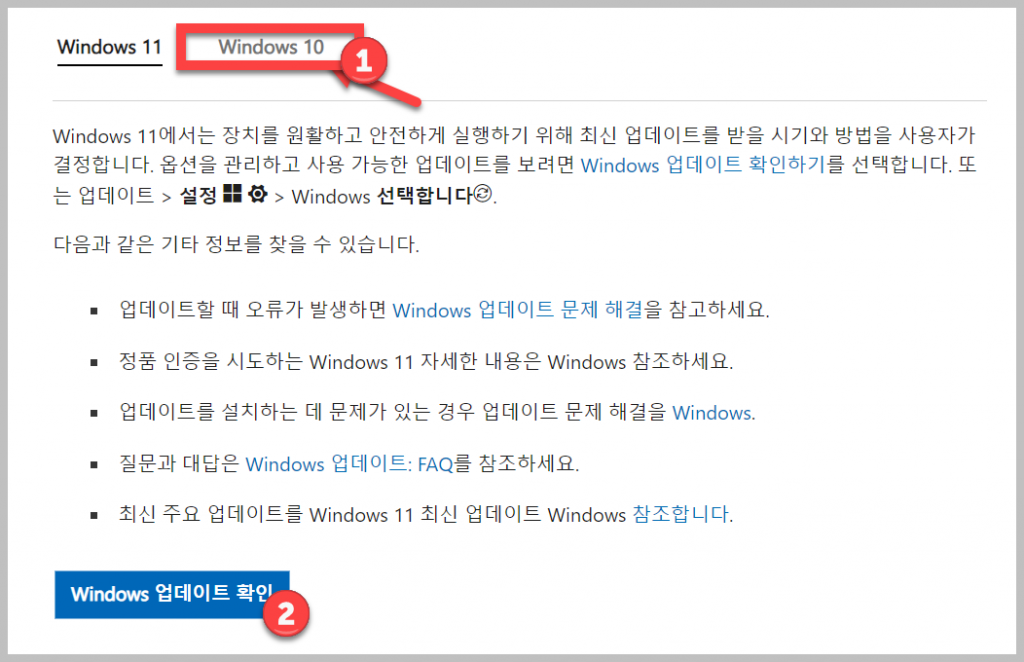 여기로 들어가시면 원하는 웹사이트로 들어갑니다. 링크가 하나 보이는데 '업데이트 확인하기'라고 되어 있습니다. 이것을 클릭하시면 업그레이드가 가능합니다.